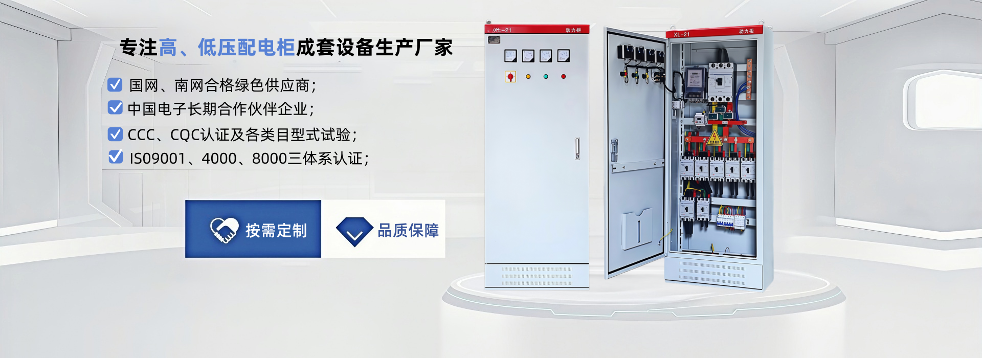 昌偉業注重對人才的引進及培養,擁有高技能的專業技術人才。同時具有先進水平的各類生產設備,檢測設備,并與眾多科研單位、高等院校進行緊密合作及聘請了高級工程師,采用國內外創新技術,奠定了昌偉業電氣過硬的品質基礎。公司主要產品有:高低壓電氣成套設備、預裝式變電站、電纜分支箱、配電箱、開關設備及配網自動化等產品。